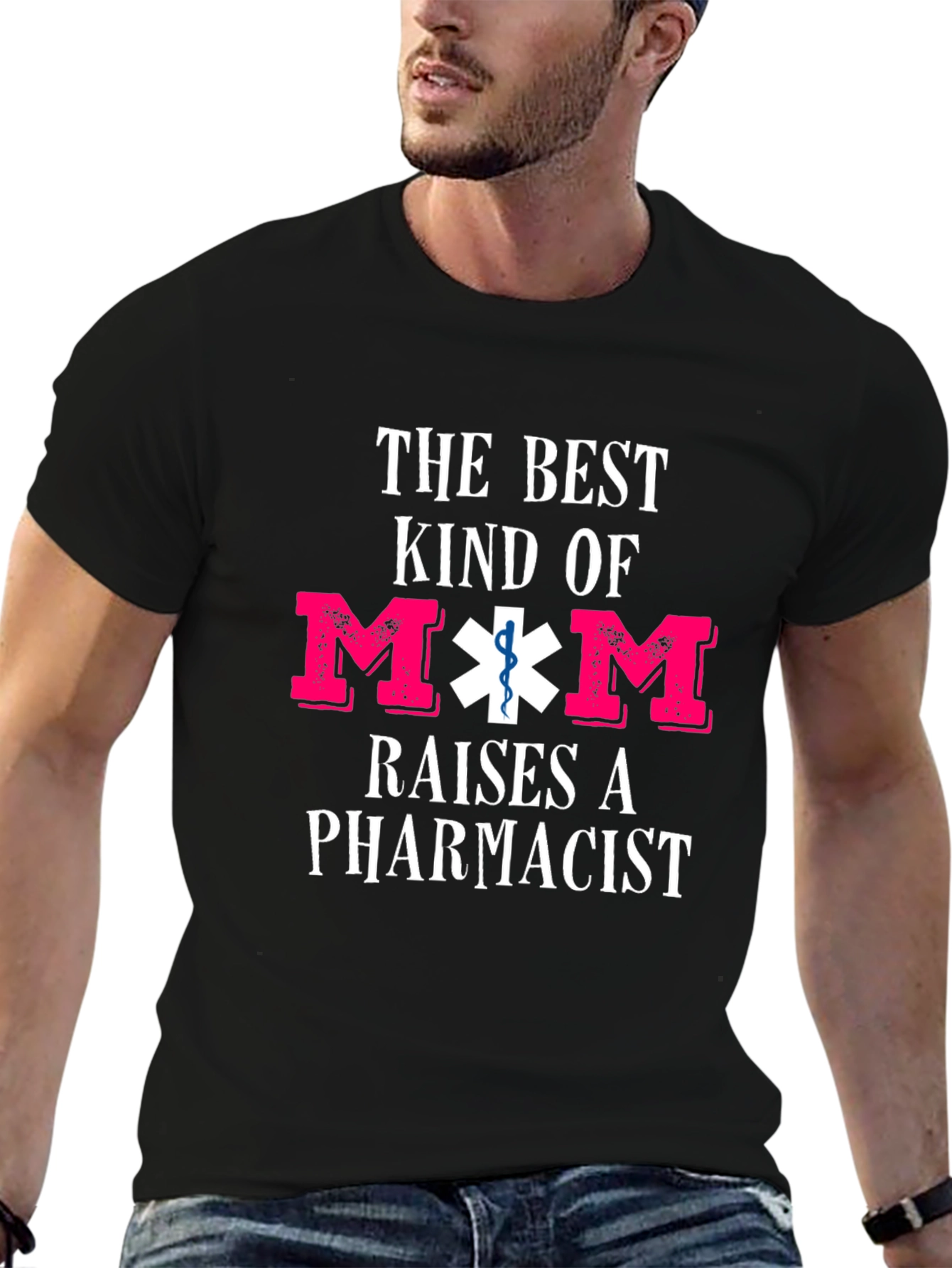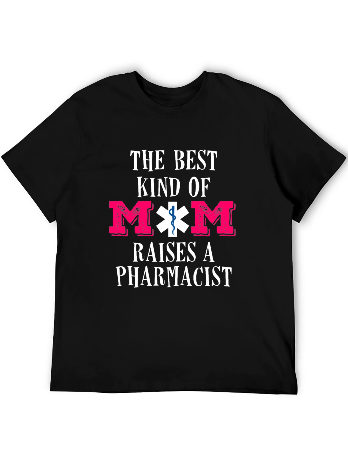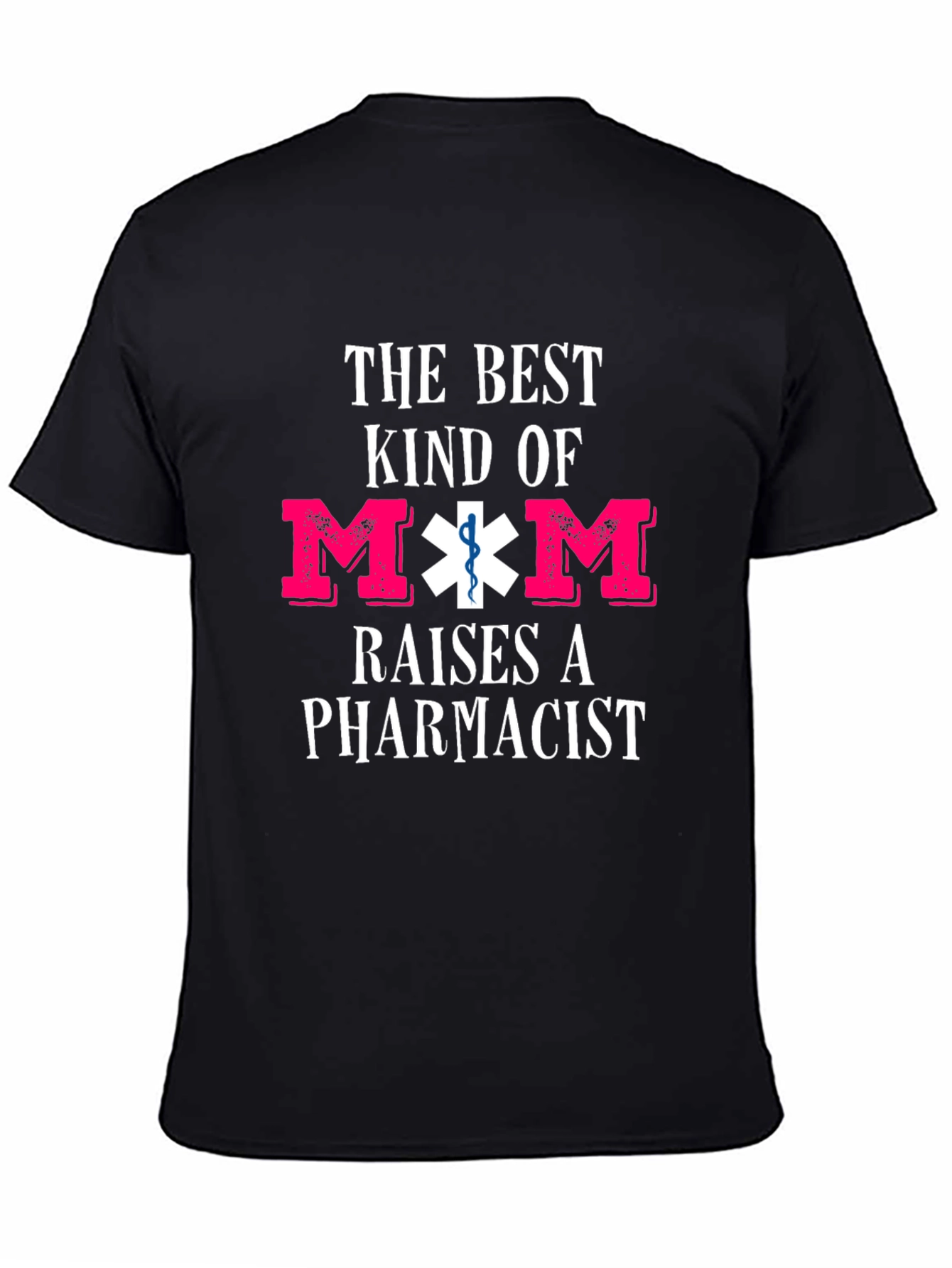 Show your pride with this "The Best Kind of Mom Raises a Pharmacist" T-shirt. This black casual shirt features a bold design with the word "MOM" in a pink graphic, with the medical star symbol in the center. It's a comfortable and stylish way to show support for your pharmacist child. Perfect for casual wear, family gatherings, or as a thoughtful gift for a proud mom.