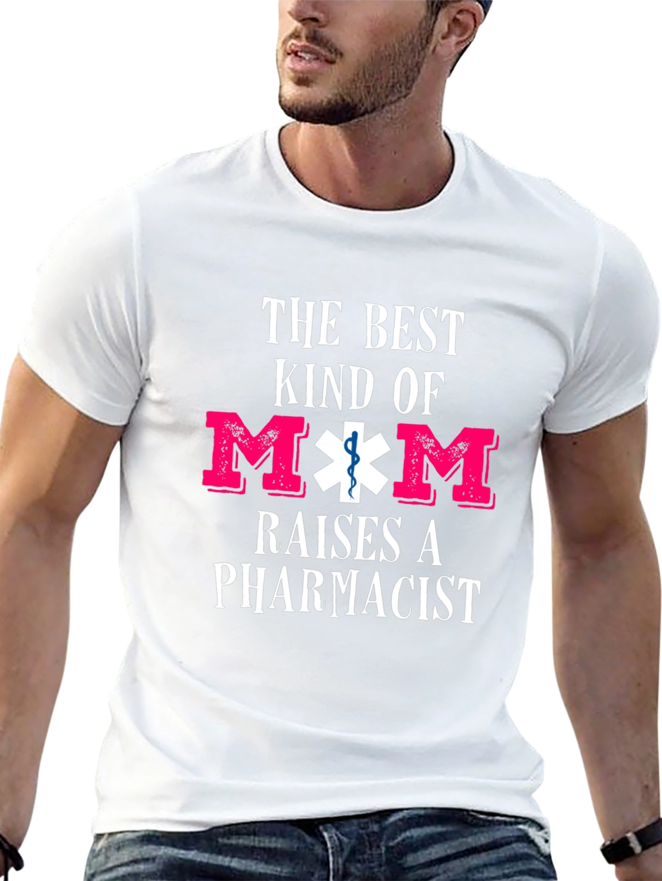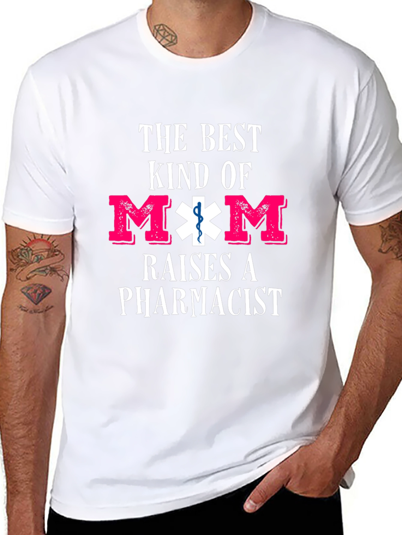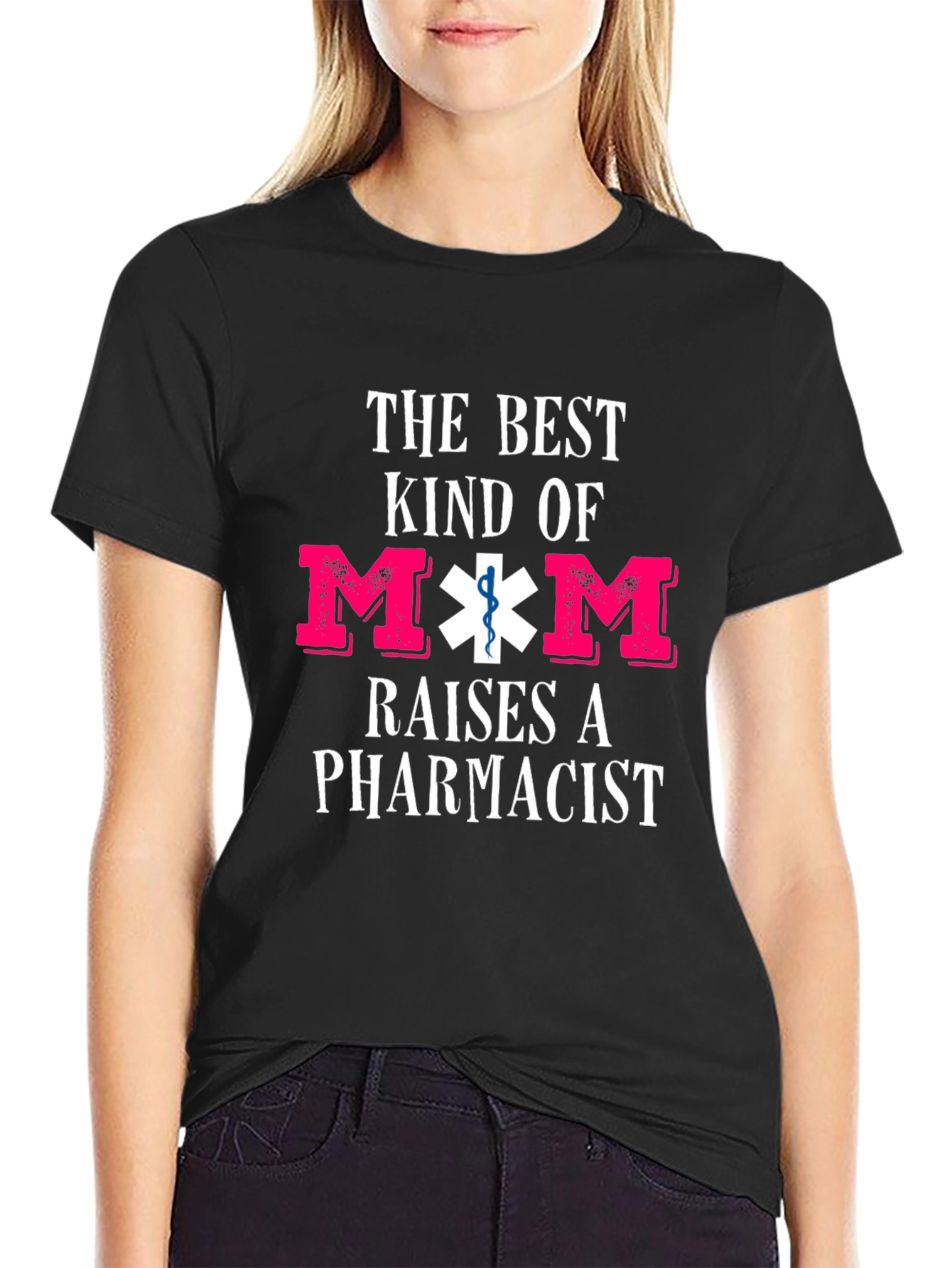 Show your pride with this "The Best Kind of Mom Raises a Pharmacist" T-shirt. This black casual shirt features a bold design with the word "MOM" in a pink graphic, with the medical star symbol in the center. It's a comfortable and stylish way to show support for your pharmacist child. Perfect for casual wear, family gatherings, or as a thoughtful gift for a proud mom.